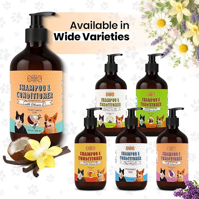 - "EASY 2-IN-1 GROOMING FOR DOGS & CATS: Simplify bath time with this convenient dog shampoo, combining cleaning and conditioning in one effective step. Perfect for busy pet parents, It works as both dog shampoo and conditioner as well as organic cat shampoo and conditioner, making it great for both dogs and cats care."