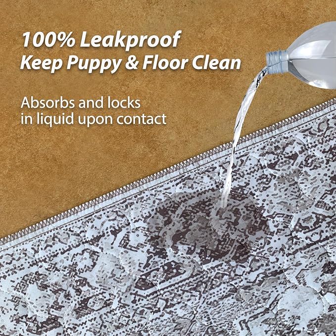 nunubaby 4PACK Washable Pee Pads for Dogs, Stylish, Non-Slip and Leak-Proof Pee Pads. Reusable Potty Pads for Dogs for Crates and Floors.(Brown/Geo, 24" x36")