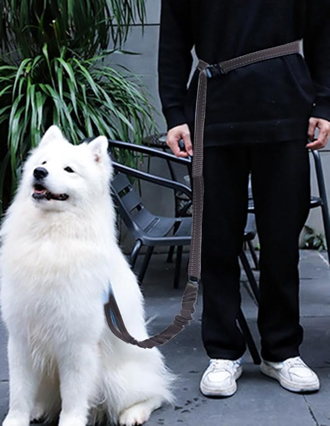 - Bungee Dog Leash: This heavy duty bungee dog leash is perfect for active dogs. Bungees design help to absorb shock from dogs, reduce back strain and the risk of getting hurt. Our waist leash is 57 inch and extends up to 90 inch, your dog can comfortably run in front of you. And the dog leashes for large dogs heavy duty with short handle, you can use it pull the dog back to safety fastly in case of emergency