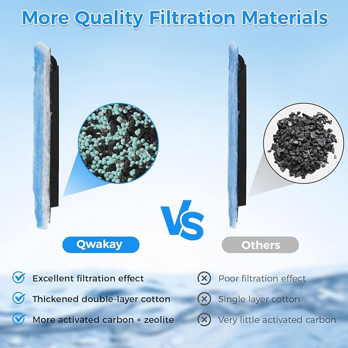 - HIGH PERFORMANCE FILTER CARTRIDGE: The fish tank filter cartridge is made of high-density cotton with high-quality coconut shell activated carbon, which provides efficient mechanical and chemical filtration to keep the water clear and provide a healthy living environment for aquatic life.