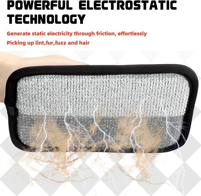 - 【Effortless Cleaning by Powerful Static Technology】 Powered by static electricity, the pet hair remover attract lint, pet hair, and dust with simple glide. No more repetitive rolling or struggling to pick up stubborn debris!