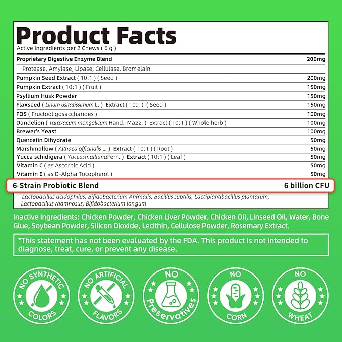 - DELICIOUS & EASY TO USE: Made with real chicken powder and beef powder for a flavor dogs love. These soft chews are an easy, mess-free daily option that supports your dog's digestive systemβno hassle of pills or powders