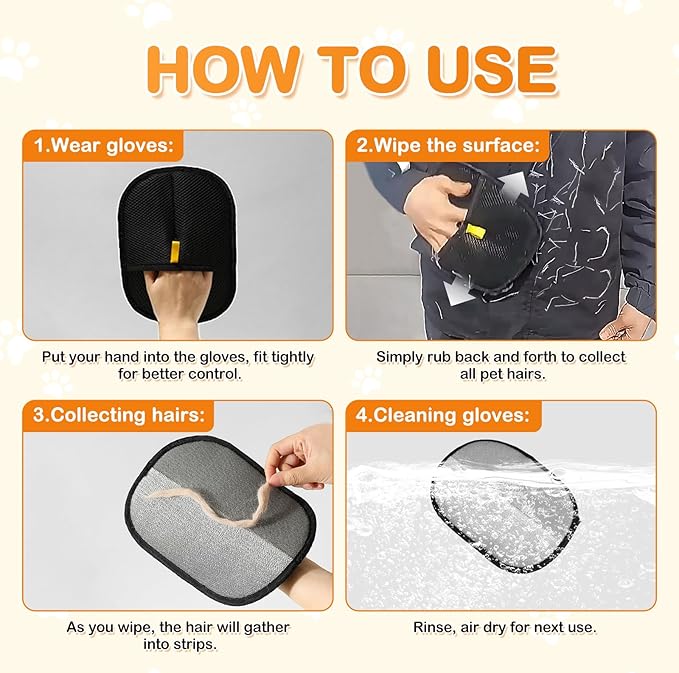 - Versatile application: Our pet hair gloves not only suitable for pets, but also can be widely used on a variety of surfaces such as sofas, beds, clothes, car seats, pet accessories, and more, suitable for any daily grooming or cleaning occasions