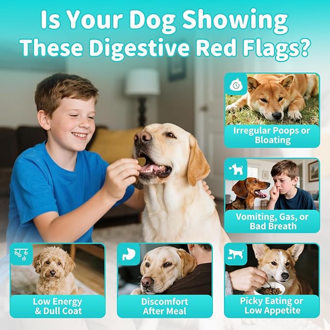 - For Overall Digestive Wellness: Our dog digestive support chews formula is designed to support a balanced digestive system. The blend of probiotics, enzymes, and pumpkin helps maintain normal bowel function and promotes* proper stool consistency for your dog