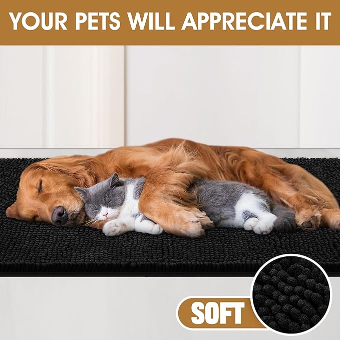 IM HOME 30" x 20" Black Dog Door Mats for Muddy Paws, Chenille Absorbent Dog Mat, Non Slip Heavy Mud Mat for Dogs, Soft Pet Bed Mat for Entryway, Mud Paws, Inside Floor
