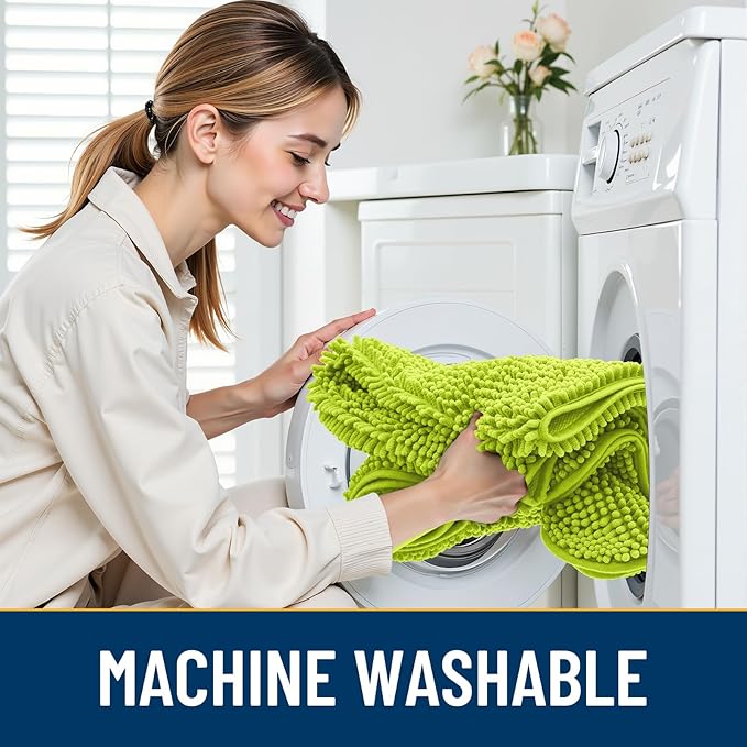 Smiry Dog Door Mat for Muddy Paws 36x24, Absorbs Moisture and Dirt Doormat, Non-Slip Washable Quick Dry Chenille Front Door Mat Indoor Entrance, Entryway Carpet for Inside Floor, Bright Green
