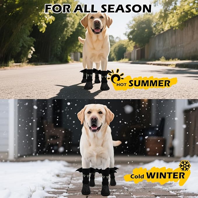 EXPAWLORER Halloween Anti Slip Dog Socks to Prevent Licking Paws, Boots & Paw Protectors with Grippers,Doggie Booties for Hardwood Floors for Small Medium Large Senior Dogs Costume Black Devil Wings M