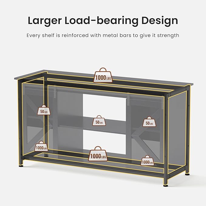 - Heavy-Duty 1000LB Capacity Construction: Featuring a reinforced 1.57" thick steel frame with particleboard/MDF panels, this stand supports up to 1000 lbs evenly distributed weight (tabletop and bottom shelf). Middle shelf holds 100 lbs for accessories.