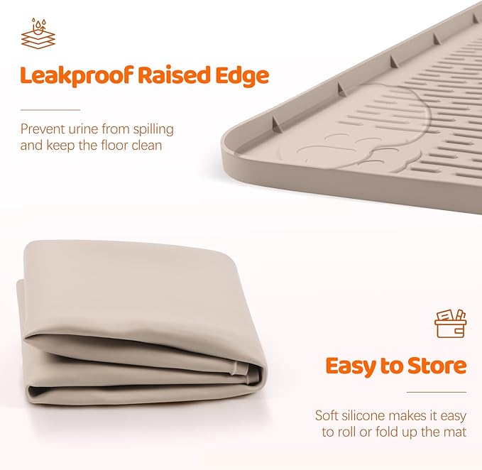 - Superior Leak-Proof Protection for Floors: This dog training pad safeguards your floors from accidents with its waterproof silicone construction. Unlike fabric pads, its seamless, non-porous surface locks in liquids and prevents seepage, while the raised edge contains spills, ideal for puppy potty training or senior dogs with incontinence. Perfect for hardwood, tile, or carpet, it keeps your home clean and dry.