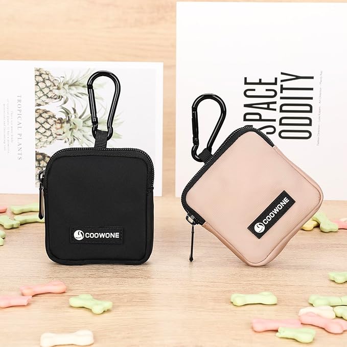 Dog Treat Pouch 2 PCS, Waterproof Small Dog Treat Bag for Leash, Hands Free Puppy Walking Bag with Carabiner, Pet Poop Bag Holder for Pet Puppy Travel or Outdoor Use, Zipper Closure to Avoid Spilling