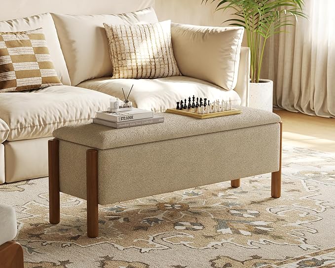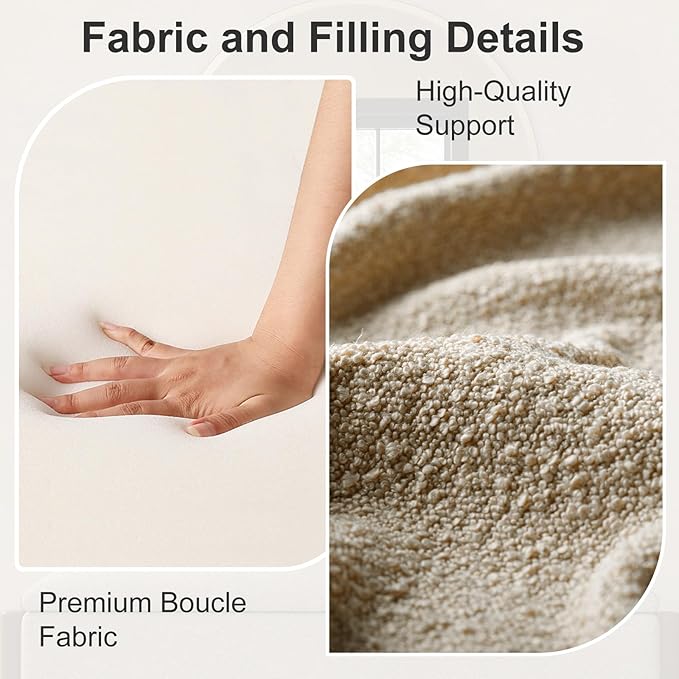- Soft Boucle Fabric and High-Density Padding: Ottoman with storage features luxurious boucle upholstery for a soft, comfortable seat. This storage ottoman's durable fabric and high-density foam padding offer excellent support. Whether used as seating, a footrest, or an accent piece, this storage bench ensures lasting comfort. For bedroom use, it guarantees elegance and comfort. Storage ottomans with such padding are reliable and stylish additions