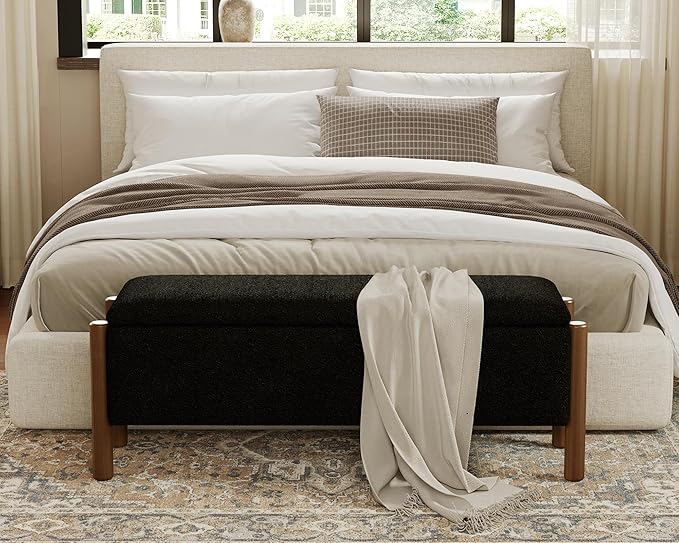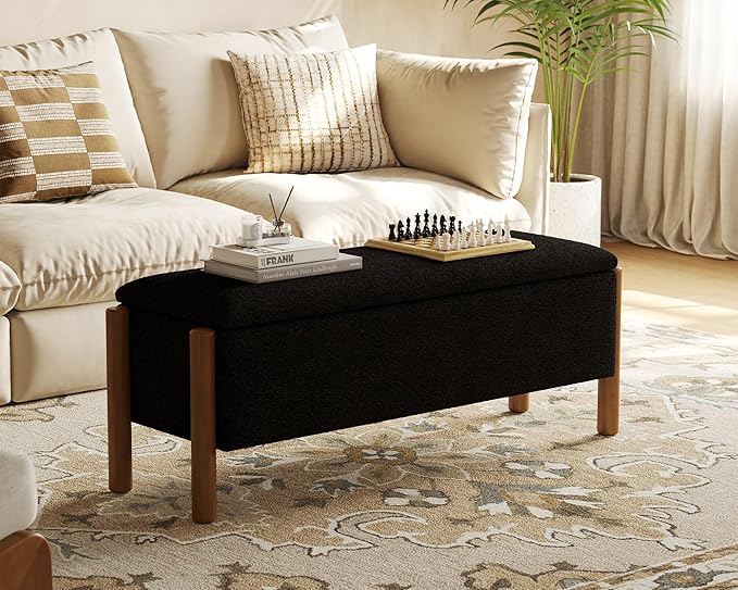 Storage Ottoman Bench, End of Bed Bench for Bedroom, 47" Boucle Upholstered Entryway Shoe Seat Benchs, Holds up to 660 lb Storage Ottoman, Padded Blanket Chest Stool Foot Rest for Living Room Black
