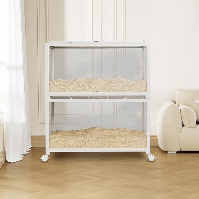 - Well-ventilated Activity Space: This acrylic guinea pig cage comes with a wide front door and top vents to ensure optimal air circulation, effectively remove odors, and provide higher comfort for small pets such as hamsters, guinea pigs, hedgehogs, and quail.