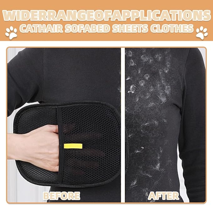 - Pet Hair Remover Gloves for Cats & Dogs: Effectively cleans shedding hair from cats and dogs during grooming or petting sessions, lifting embedded fur with ease.