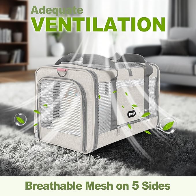 - 360Β° Ventilation & Dual-Entry - Four-sided mesh ensure constant airflow during transport, while the wide top opening and side door facilitate stress-free transfers and quick check-ins for rabbits and puppies