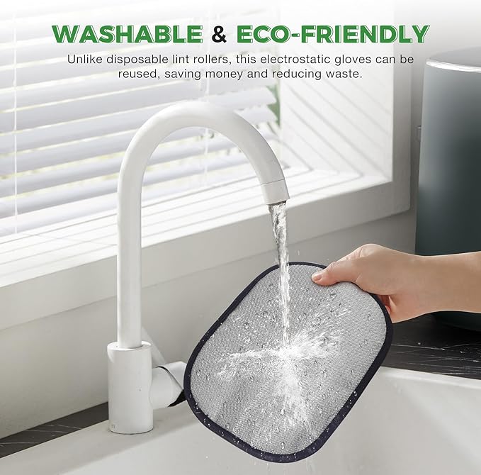 - 【Reusable & Eco-Friendly】Unlike disposable lint rollers, this electrostatic gloves can be reused, saving money and reducing waste.