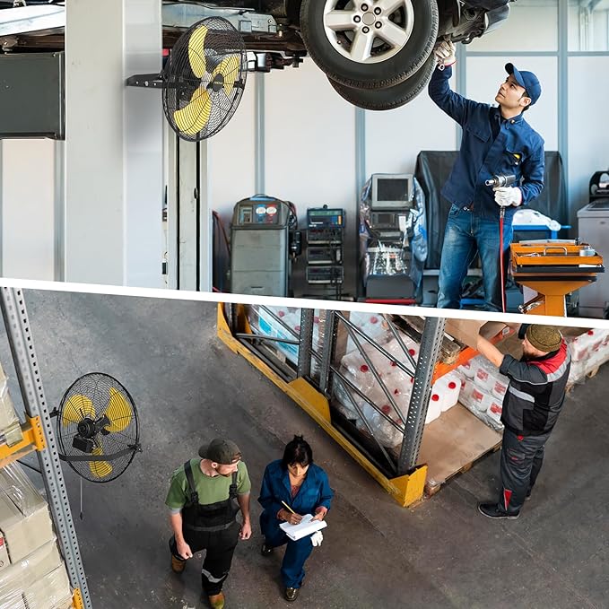 - Heavy-Duty Metal Construction: Built with high-quality metal materials, the commercial wall fans are designed to withstand demanding environments, offering long-lasting durability and reliable performance for various settings, including workshops, warehouses, garages, greenhouse, and barn