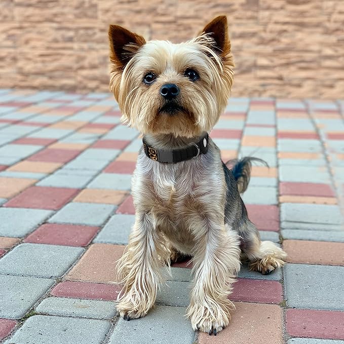 - Premium Materials – Made from genuine leather and lightweight printed nylon, this collar combines elegance with durability. It's comfortable for everyday wear and built to last. The AirTag collar also features a sturdy, easy-to-use one-click metal snap button.