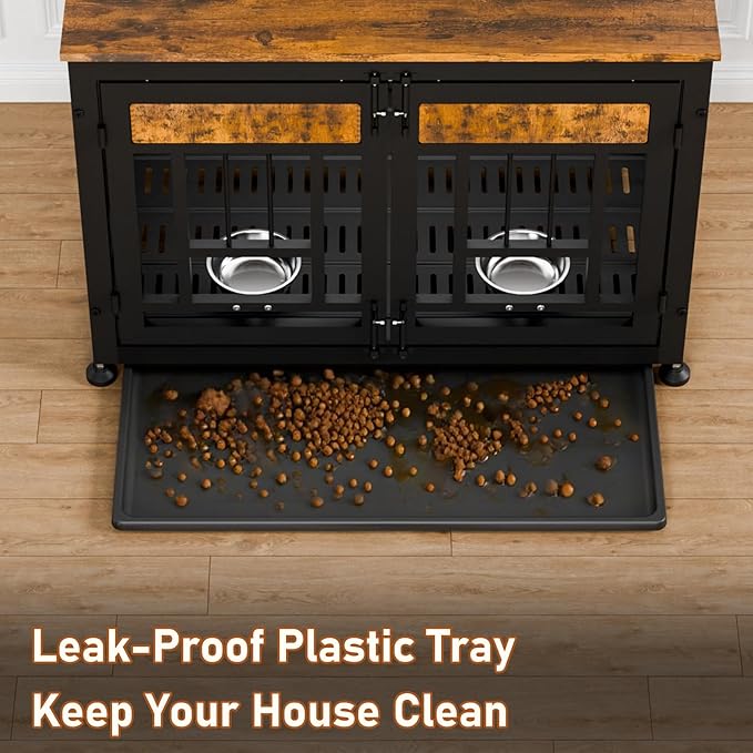 - Heavy-Duty & Safe Construction: Dog cage furniture features reinforced metal frame (rust-resistant) and durable engineered wood panels. It won't be damaged by pet bites! Ventilation cutouts ensure airflow for pet comfort and safety.