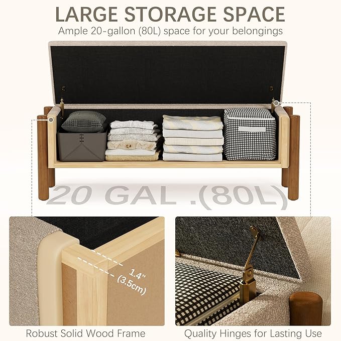 - ELEGANT & TIMELESS DESIGN: Elevate your space with this stylish Storage Bench featuring genuine walnut wood-grain legs and plush 5.5cm cushioned seating. Wrapped in skin-friendly loop yarn fabric, this chic Ottoman Bench seamlessly enhances bedroom, end of bed, entryway, or livingroom decor while offering lasting comfort.