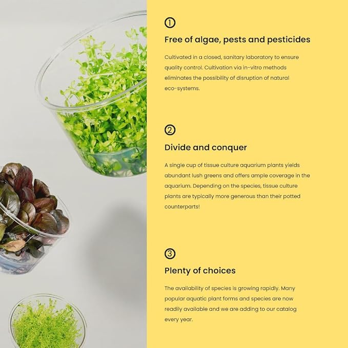 - This 1-pack includes one sterile tissue culture cup, ideal for introducing pest-free, algae-free stems to your planted layout.