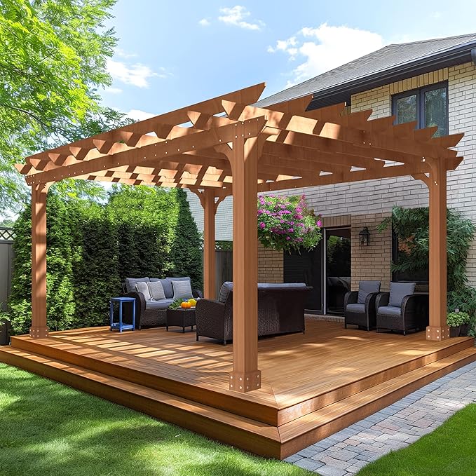 MUPATER 12x14 FT Wooden Pergola, Cedar Pergola Kit with Roof, Outdoor Garden Shelter for Backyard, Deck, Lawn, Pool, Natural